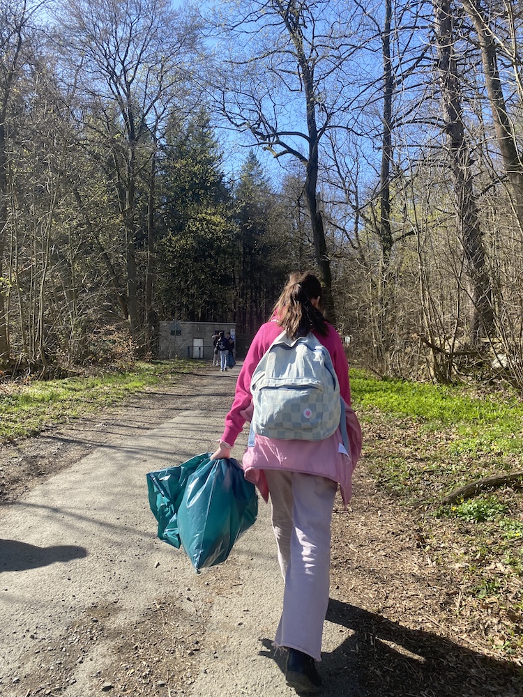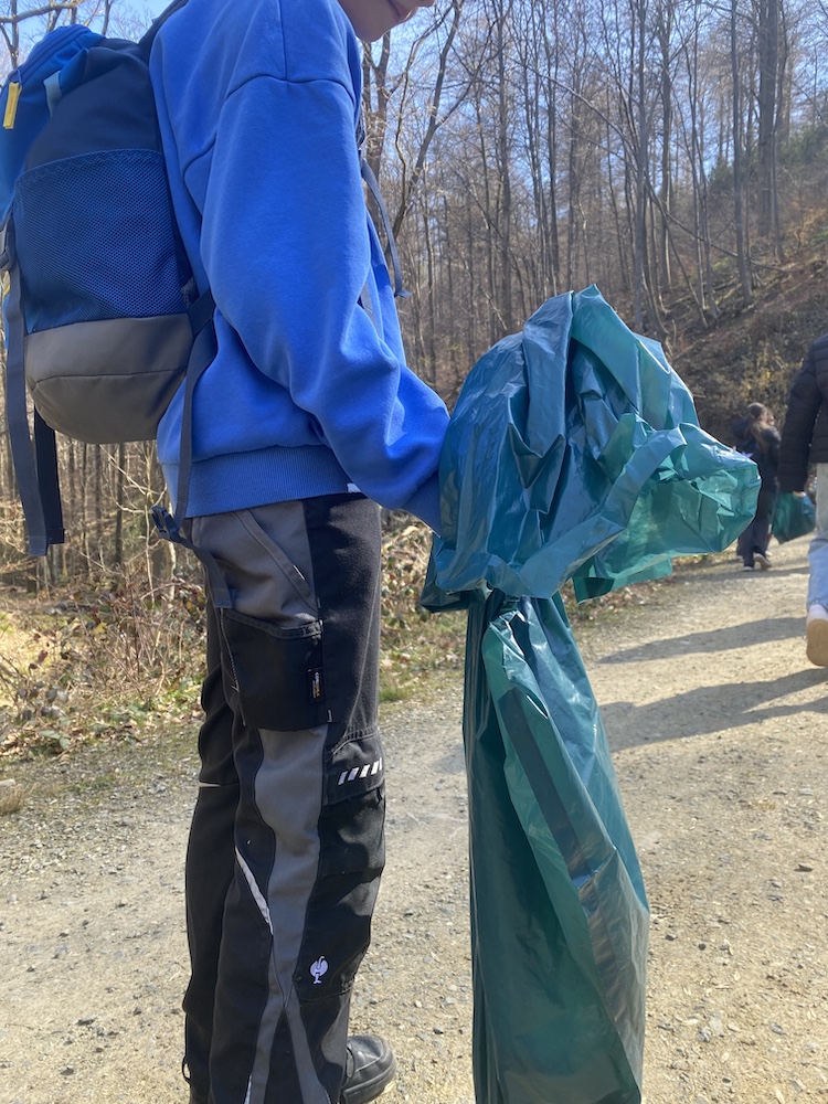 Auf der vorgegebenen Route vom Parkplatz am Wildgehege über den Fußweg „Am Stadtstieg“ in Richtung Café Goldberg und zurück durch den Wald unterhalb des Elfensteins haben die Schülerinnen und Schüler dann insgesamt nur noch sehr wenig Müll gefunden. Die Klasse vermutet, dass auf den Naturwegen weniger Menschen unterwegs sind und dass die Menschen, die dort unterwegs sind, vernünftig sind und die Natur nicht verschmutzen möchten.